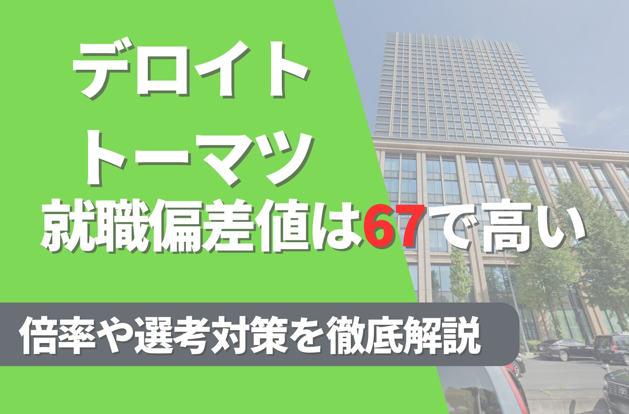 デロイトトーマツの就職難易度は偏差値67で高い!勝ち組説や倍率・選考対策を徹底解説