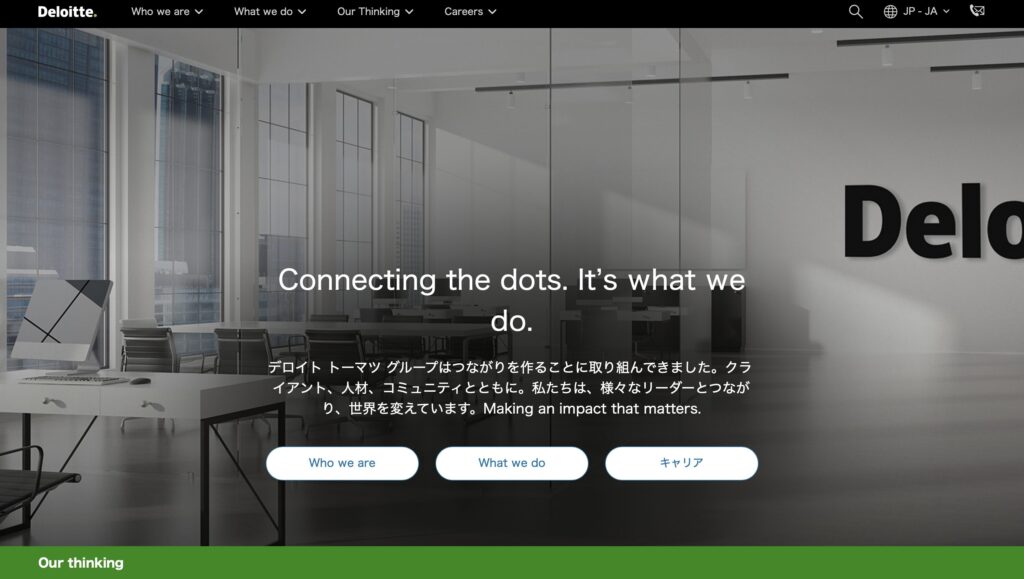 海外案件や外資系企業との協業が多く、デロイトトーマツ全体で150カ国以上に展開しているため、海外でのキャリア形成を考えている学生にもおすすめです。