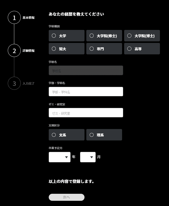 ステップ⑦|次に経歴を入力していきます。