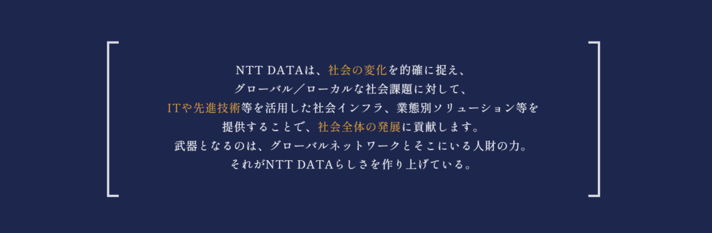 人々の毎日にそっと寄り添い、社会の土台をITの力で築き上げるNTTデータ。
