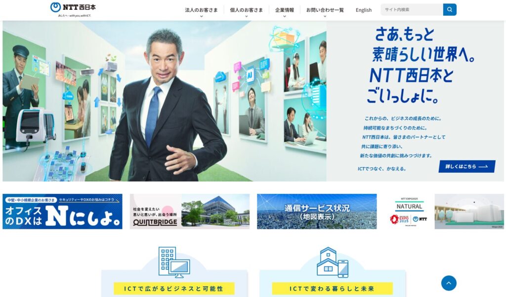 フレッツ光などの通信事業からICTサービスなど、私達の生活を支えるインフラ企業のNTT西日本
